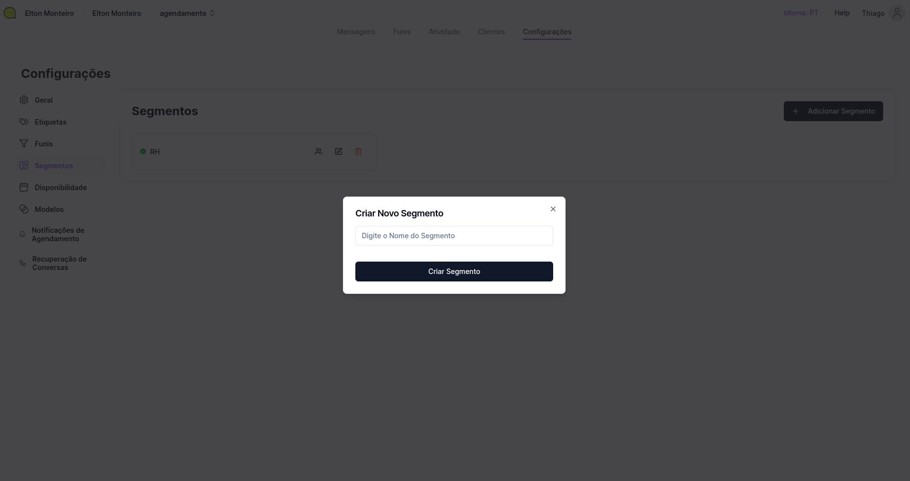 - Para adicionar um segmento basta clicar em Adicionar Segmento, preencher as informações e clicar em Criar Segmento.